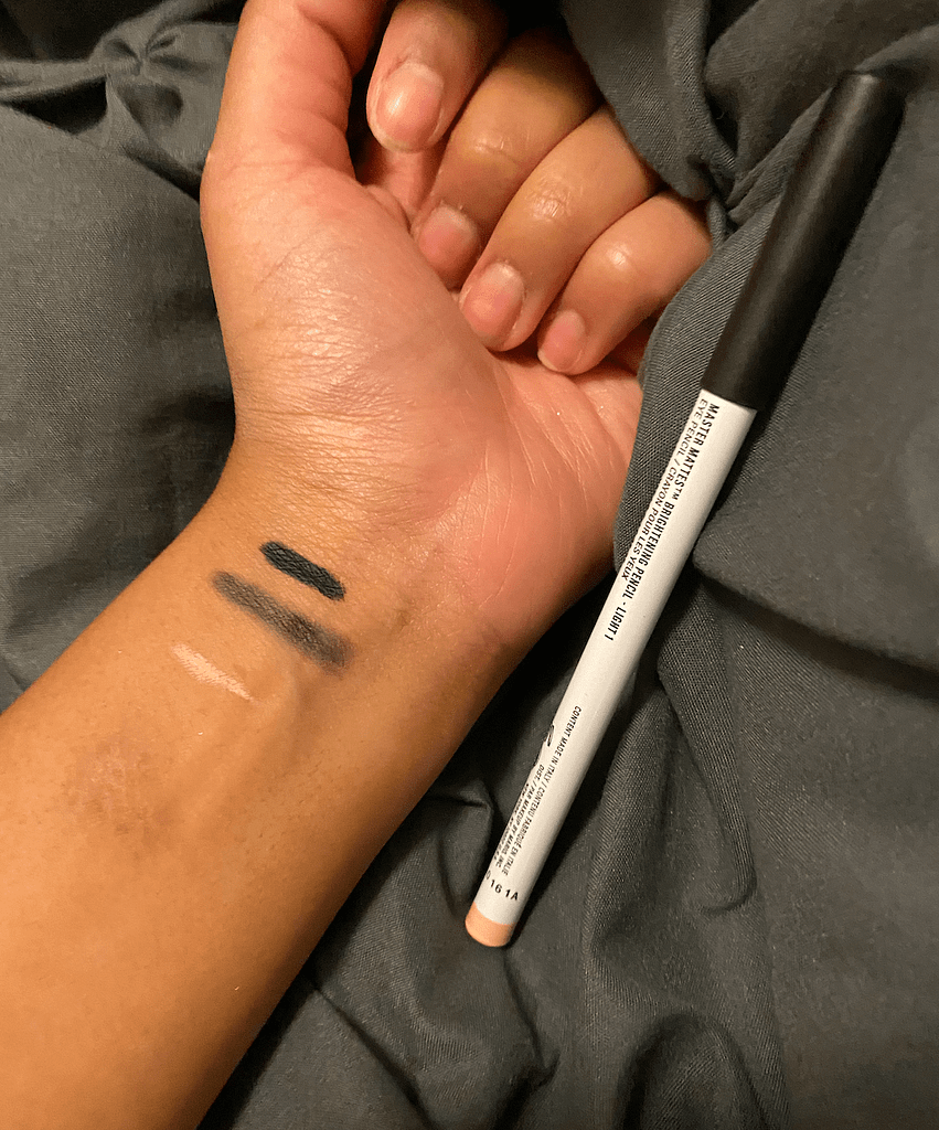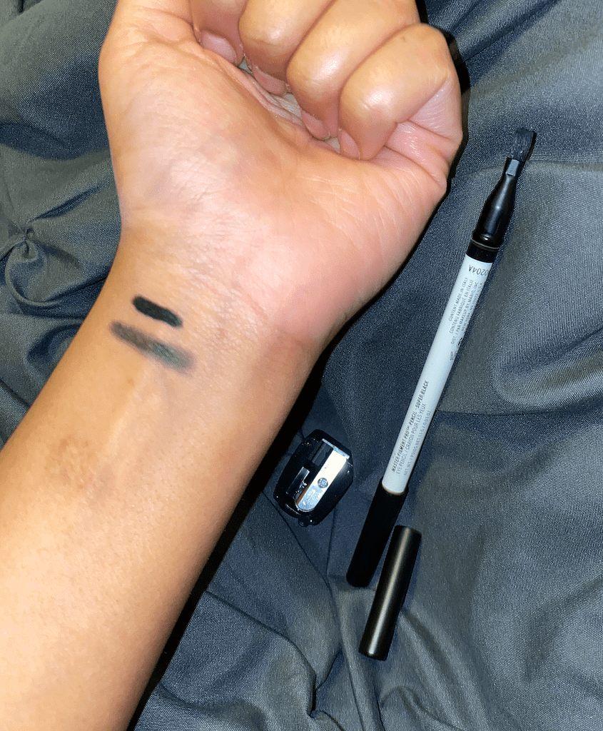 I got the brightening pencil and the black eyeliner and I love them both. The formula is very creamy and pigmented. The black eyeliner comes with a smudger on the other side and I love that they both come with a sharpener!