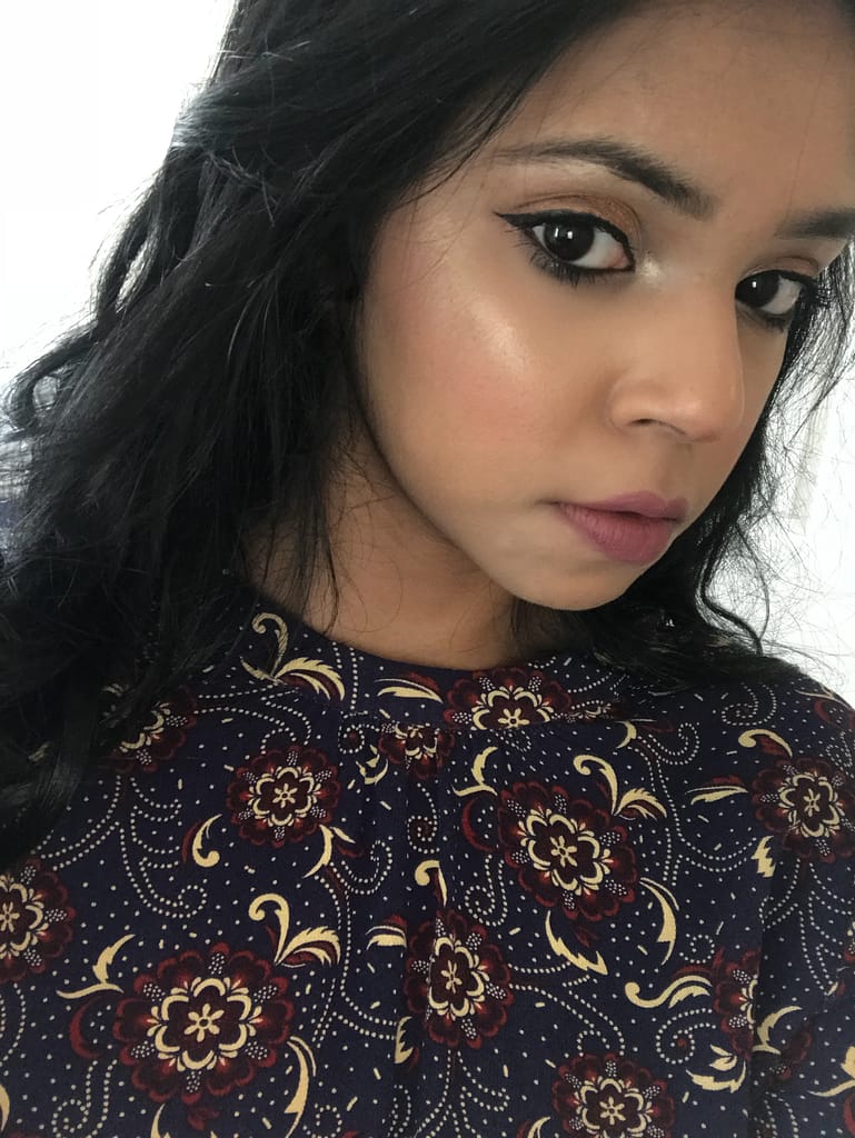 One of the best ways to do that is to layer your highlights! I normally use the melted strobe from the Huda Beauty Highlighter Palette for that but sometimes it’s a little more golden than I’d like. Sometimes I really love a silvery highlight on my skin tone.